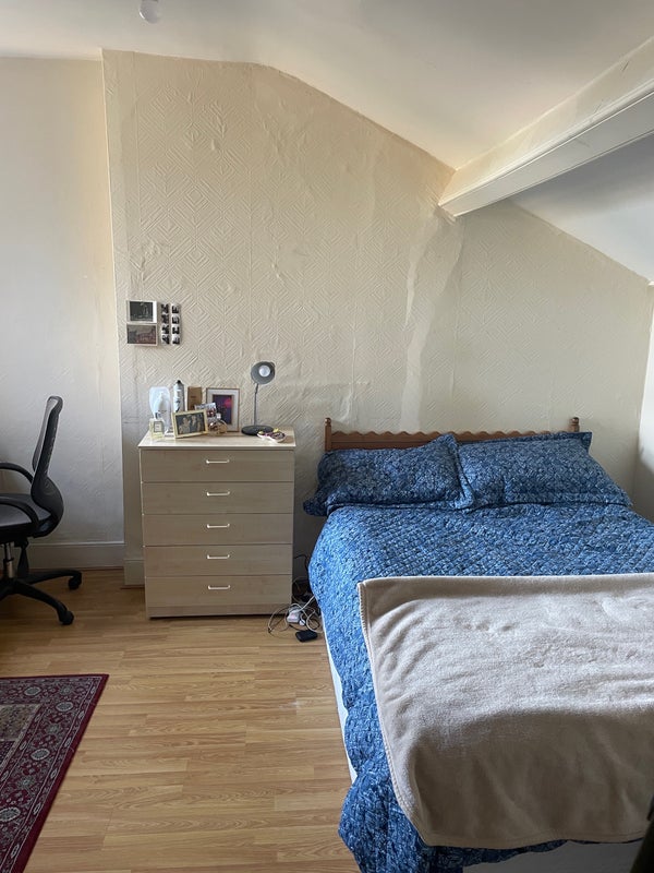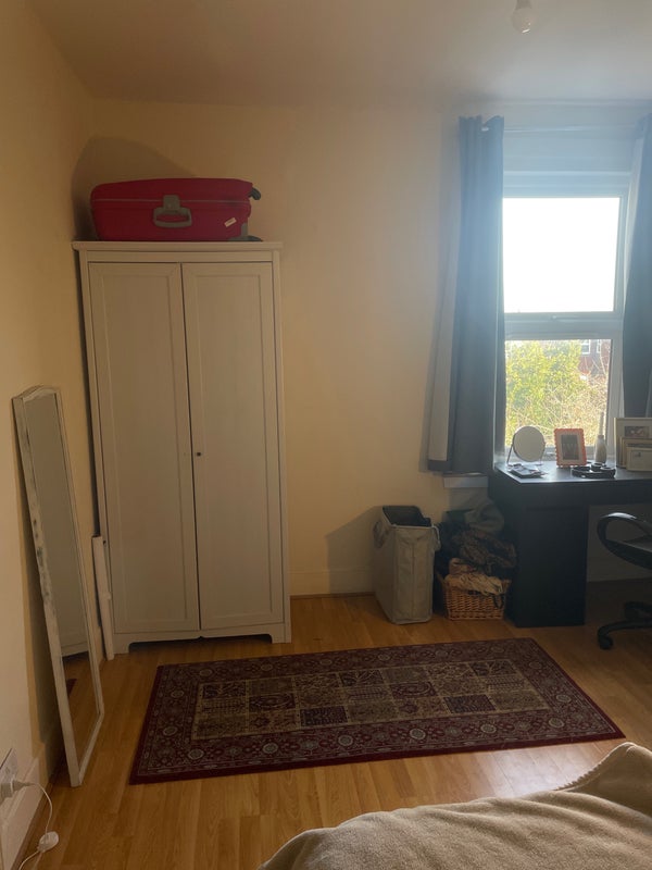 A big, bright double bedroom on the top floor of spacious house. It comes fully furnished with a double bed, wardrobe, desk and chest of drawers - perfect if you work from home or just like having plenty of space. The house itself is large, so you really don’t feel on top of each other.
