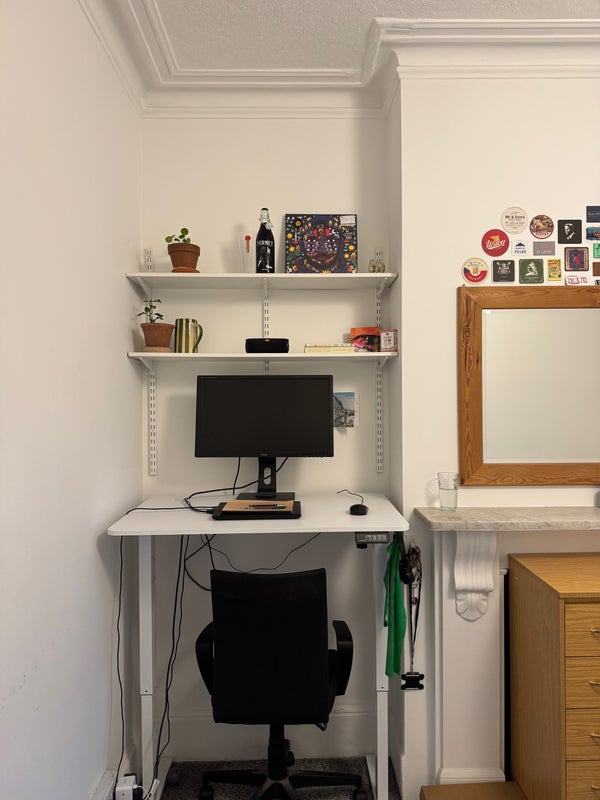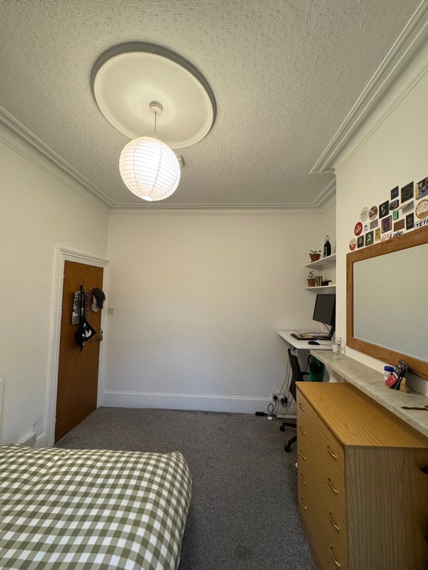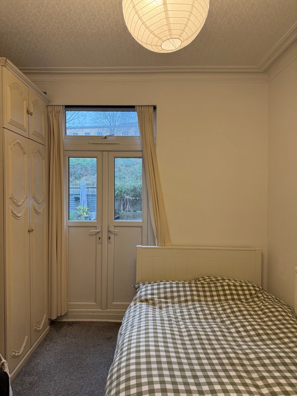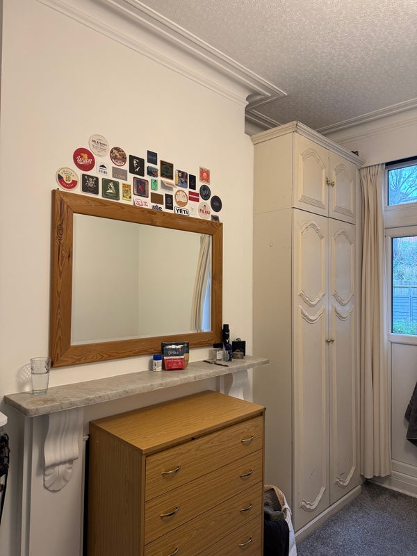The room is a standard rear (west) facing room on the ground floor, which has double doors opening onto the rear garden/patio area. The room comes with the bed and Chester draws. The standing desk is not included but a replacement desk can be arranged with the landlord. There is also a built in closet and shelves as show in the photos.