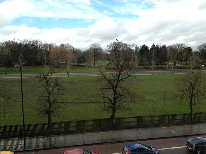 The room is not massive though enough space for a double bed, wardrobe etc. The photo is view over Finsbury Park from the room