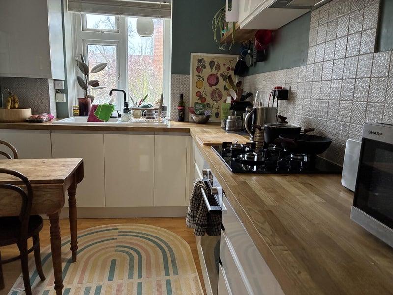 The flat is spacious, well designed, light and bright. It is a really comfortable place to be. The balcony off the lounge makes the space really airy and despite being right next to the vibrant and eclectic Stroud Green Road, it can feel like you're in an oasis.