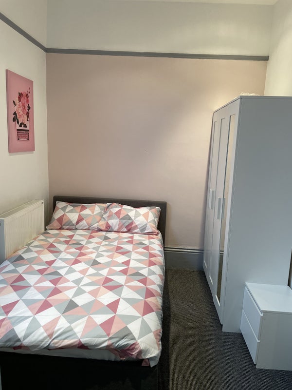 The property features a large room with new furniture including a double bed with an extra thick mattress. A wardrobe and under-bed storage is also included.