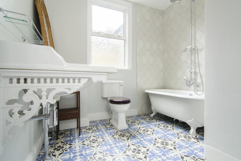 This Room is the largest in the house at the rear of the property, No street noise and has a beautiful roll top bath in the room with separate sink.