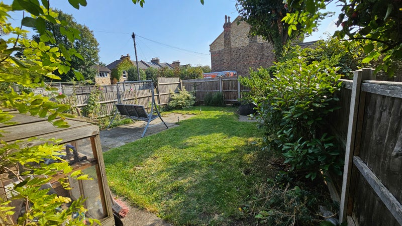 The double room comes unfurnished and looks out onto the garden. It's a light spacious room with a high ceiling. The flat has a living room, storage room, 1 bathroom, kitchen & garden.