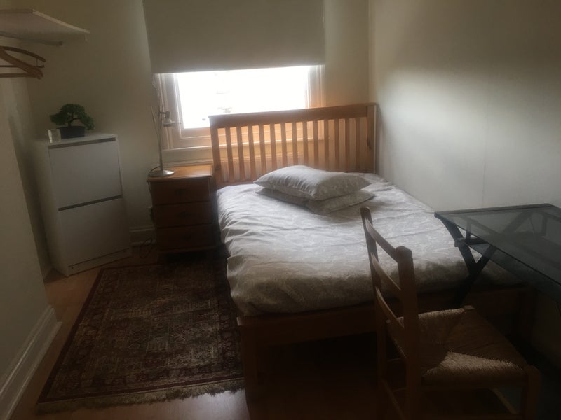 This is a lovely double room which is light and airy. The flat is a large 3 bedroomed flat with large kitchen with all modern conveniences. There are excellent transport facilities and is a quiet and peaceful space.