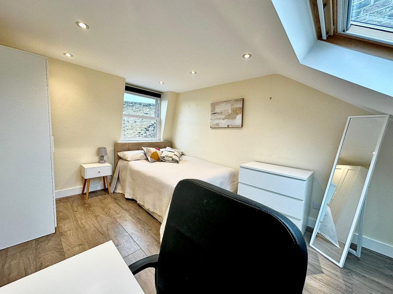 This bright and spacious three-story flat is fully equipped for comfort. Your available room includes its own dedicated private bathroom. The only other bathroom in the flat—a full shower room (shower, sink, and toilet)—is located downstairs and is shared between the two other tenants in the property.