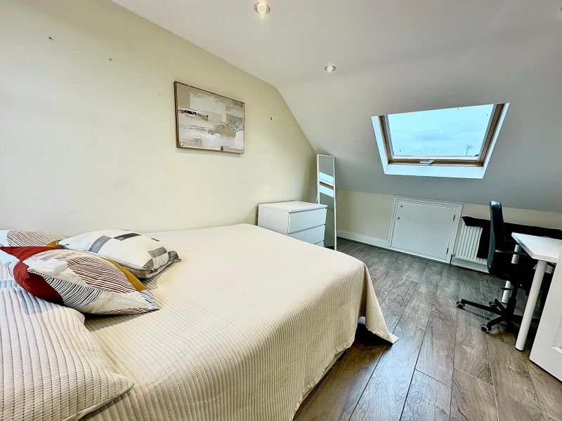 This large double room offers great privacy as it's the only room located on the top floor. The room comes with a private bathroom for your exclusive use. It is fully furnished for your comfort with a bed, side table, wardrobe, and chest of drawers, all enjoying plenty of natural light.😌