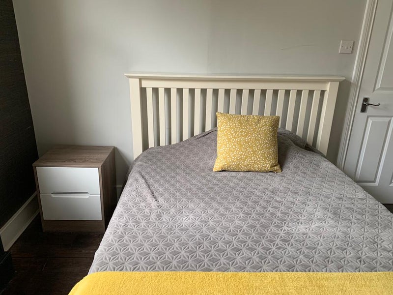 The available bedroom - bedroom 3 on the floor plan comes fully furnished including a double bed, memory foam mattress, bedside table and large built in wardrobes