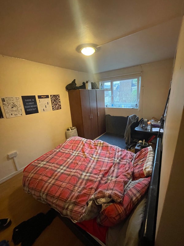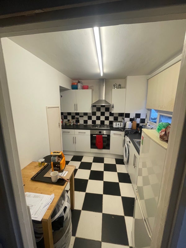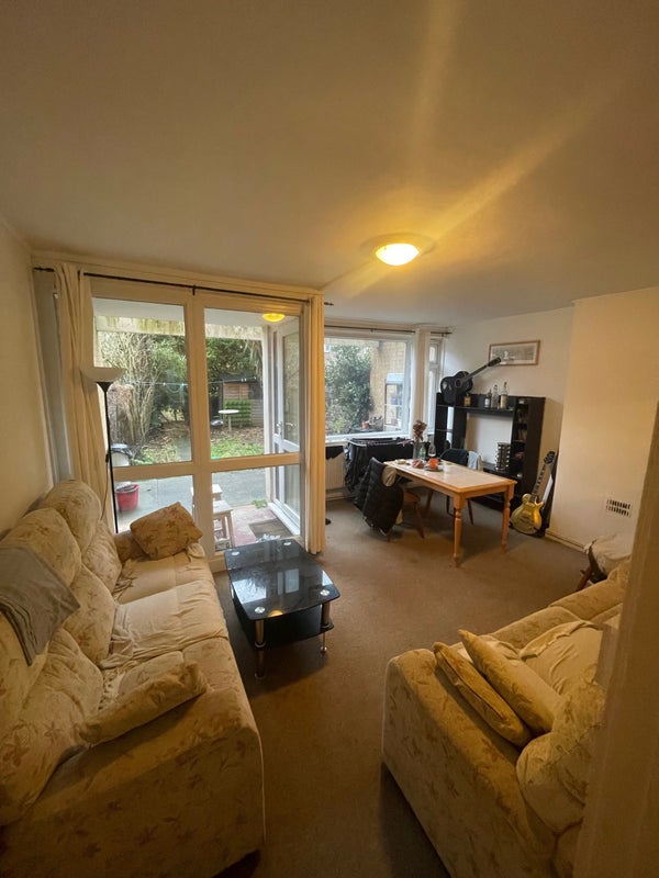 The room itself comes furnished with plenty of wardrobe and cupboard space as well as a desk and a chair. The kitchen is well equipped and there is more than enough space to share between 3. The living room is open and gets lots of light in through the glass doors and windows. The garden is a great spot to sit in and catch the sun
