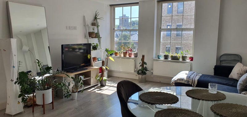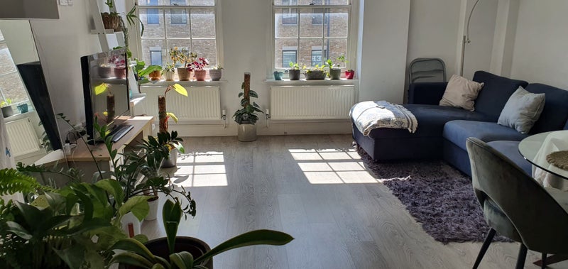 Kitchen is a modern finish with large fridge/freezer. This is a modern, clean, apartment with an open kitchen living room, on the 2nd floor of an apartment on Fulham High Street.