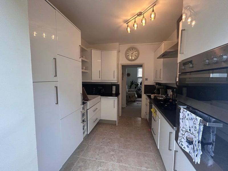 The property features a bright conservatory that floods the flat with natural light, creating a warm and inviting living space all year round. The layout is open-plan, with a well-designed working kitchen offering generous storage and excellent functionality.
