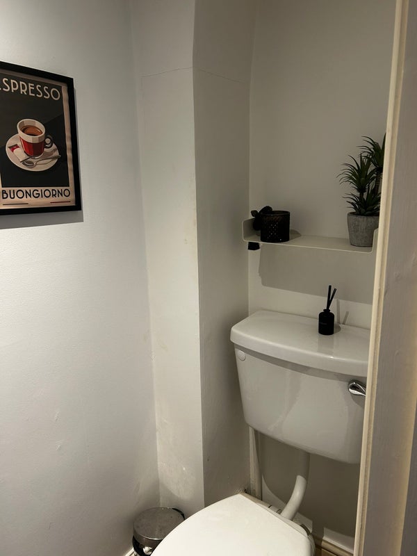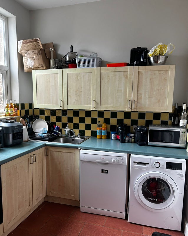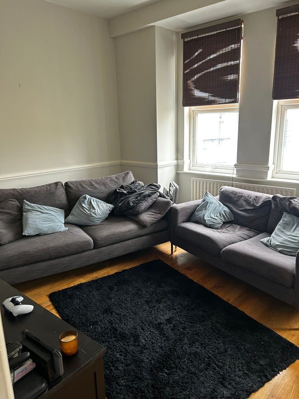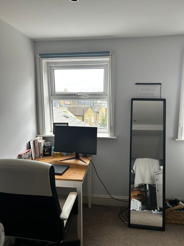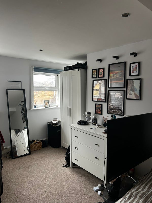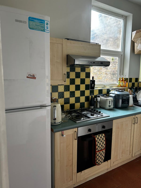 The available room is a large attic double room with a toilet ensuite. This is the only room on this floor of the building so has a good amount of privacy. There is also a good sized living room with two sofas and a dinner table. We also benefit from a large kitchen.