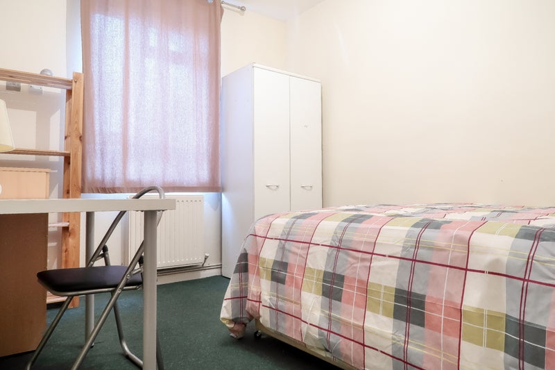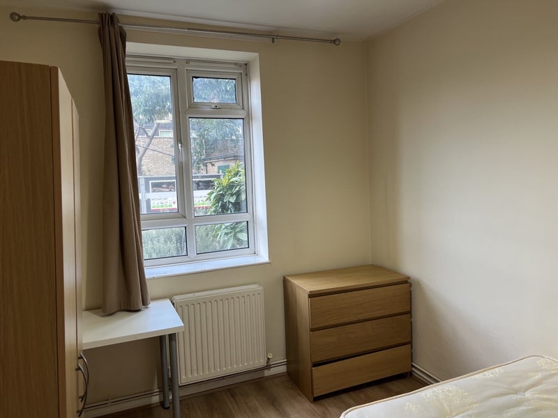 A lovely room in a newly renovated flat in Fulham Zone 2. Has a double bed, wardrobe, and chest of drawers.