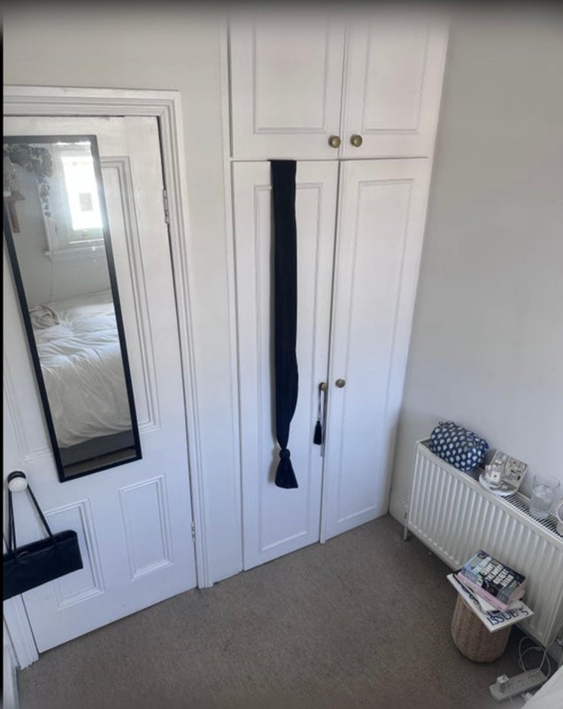 You'll share a bathroom with one other person. It's a small but cosy room with lots of storage space. No space for a desk unfortunately.