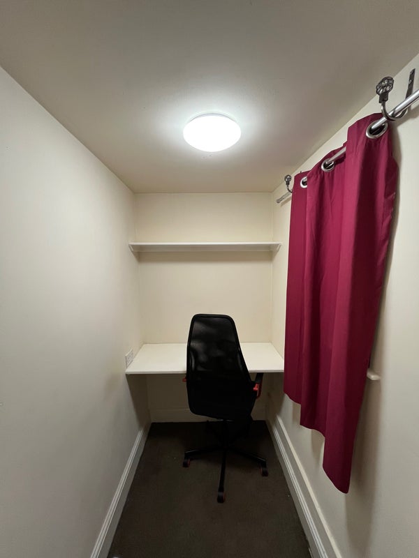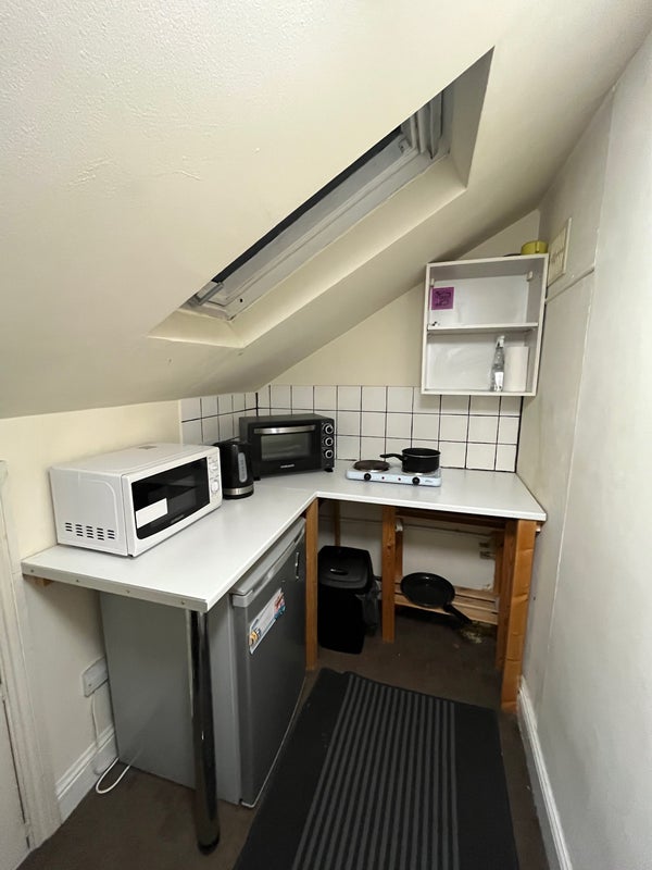Spacious En-suite studio room with kitchenette and office alcove, situated within a house share. You will also have access to the washing machine/tumble dryer, living room and kitchen as well as everything else in the shared spaces of the house. Kitchenette comes with a grill/oven, hob, microwave, kettle and a fridge.