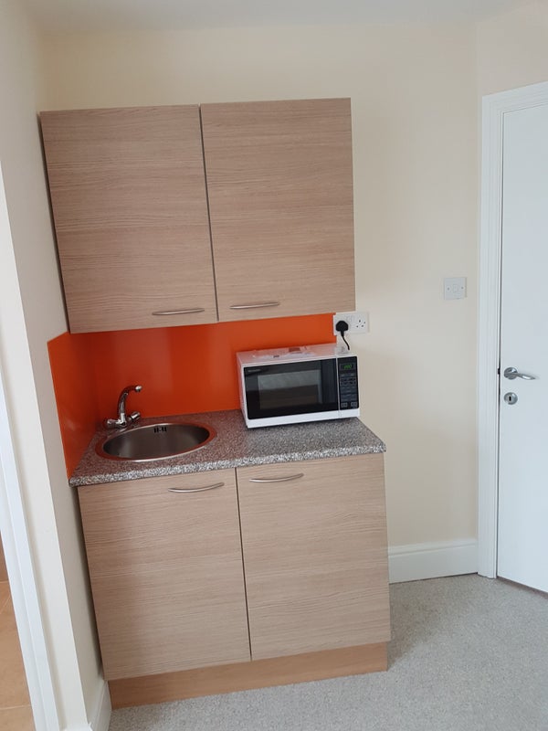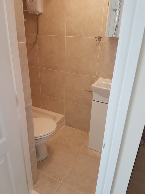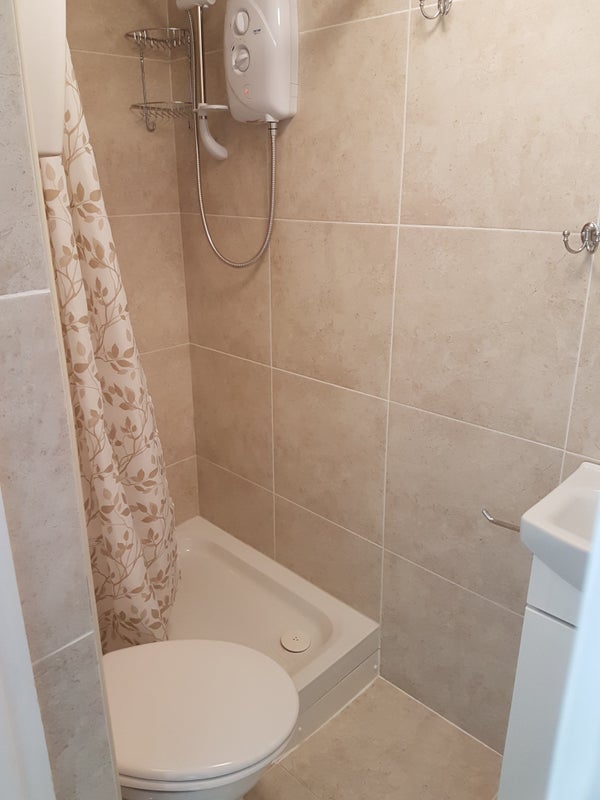 The flat has a double bed, private bathroom, kitchenette, and a shared full-size kitchen with washing machine and tumble dryer.