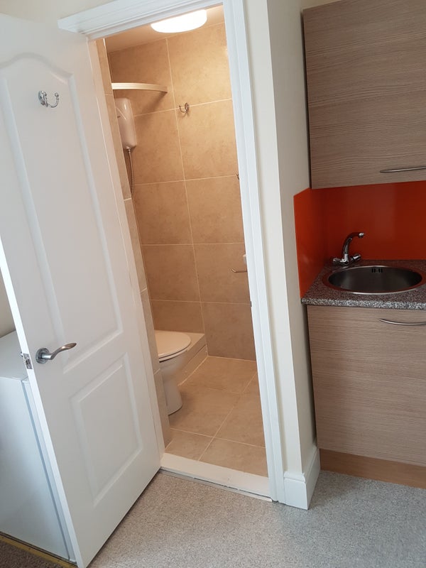 This double bed studio flat is on the first floor of a house in a good location near shops, buses and a short distance to Golders Green Underground Station.