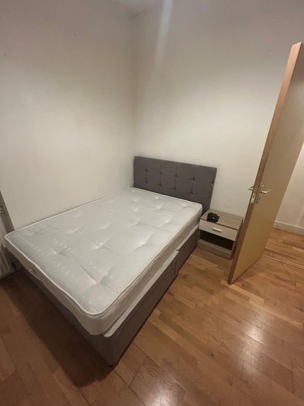 Large double bed with plenty of wardrobe space in a 3 bedroom flat with 1 bathrooms.
