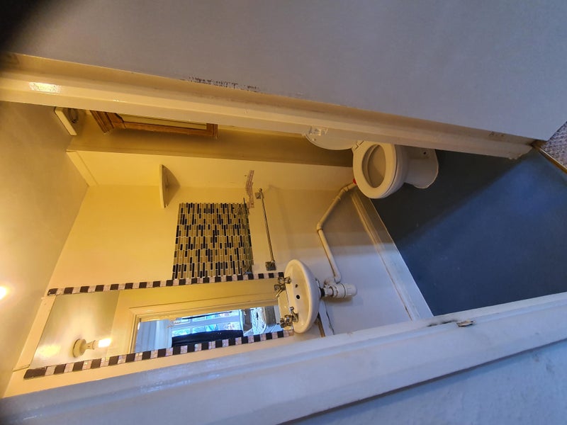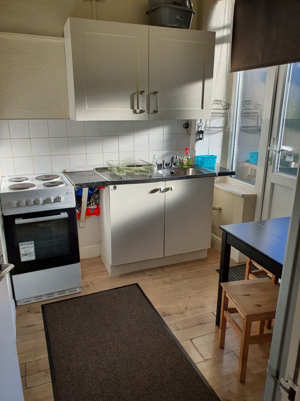 There is a separate kitchen, a large main room with double bed and a bathroom.