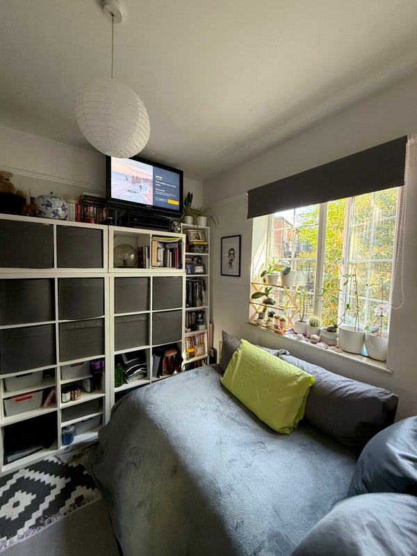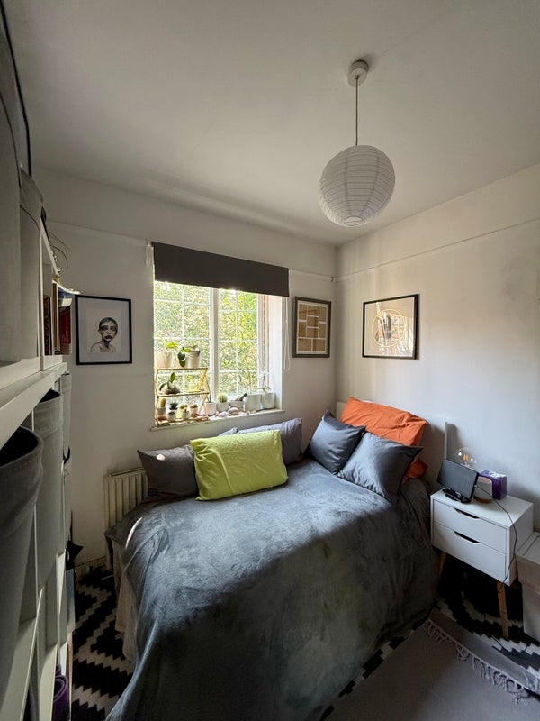 The available room is a small double bedroom. Please note the current furniture belongs to the outgoing flatmate and may change. Due to the size, a double bed will significantly limit additional space.