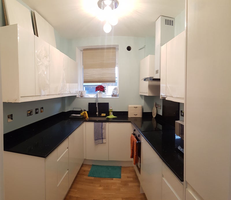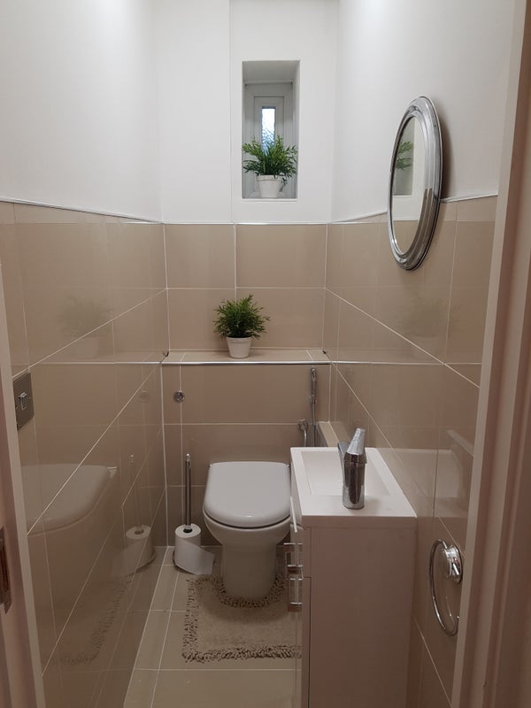 Kitchen includes a hob, oven, fridge, freezer, microwave, kettle, and washing machine.