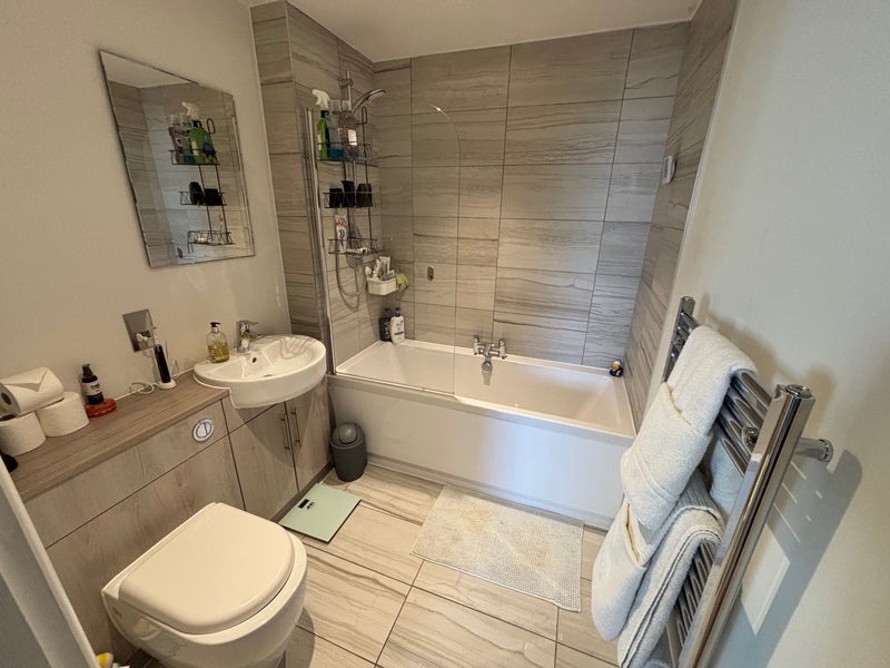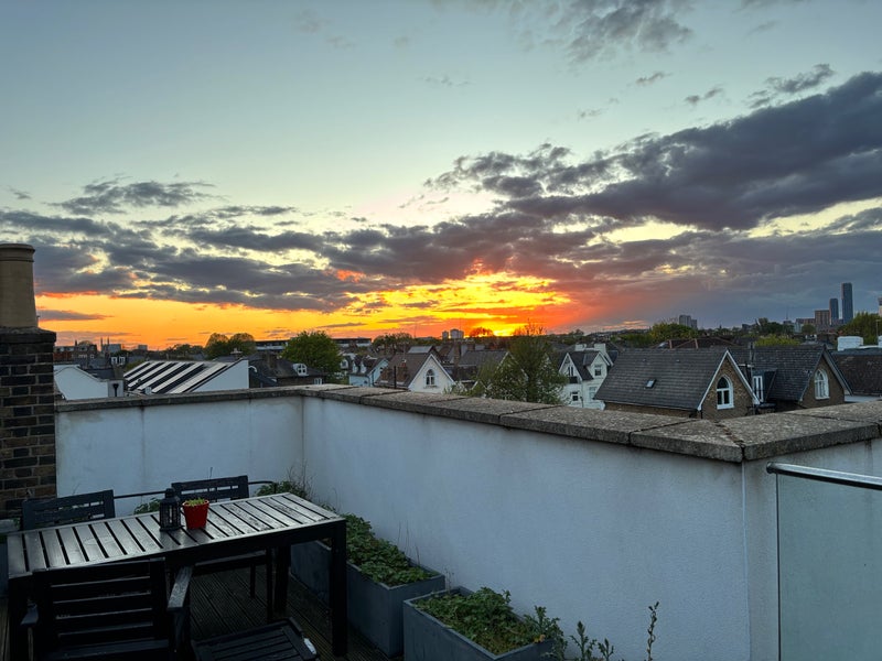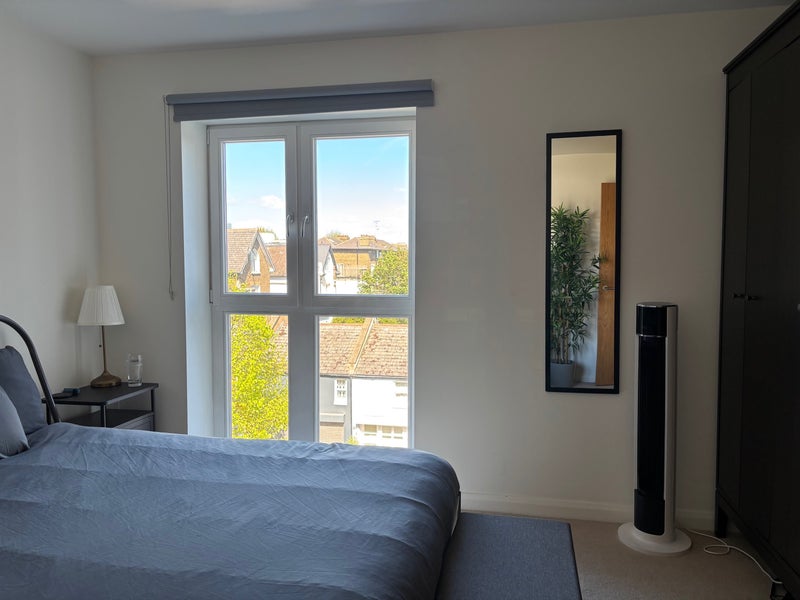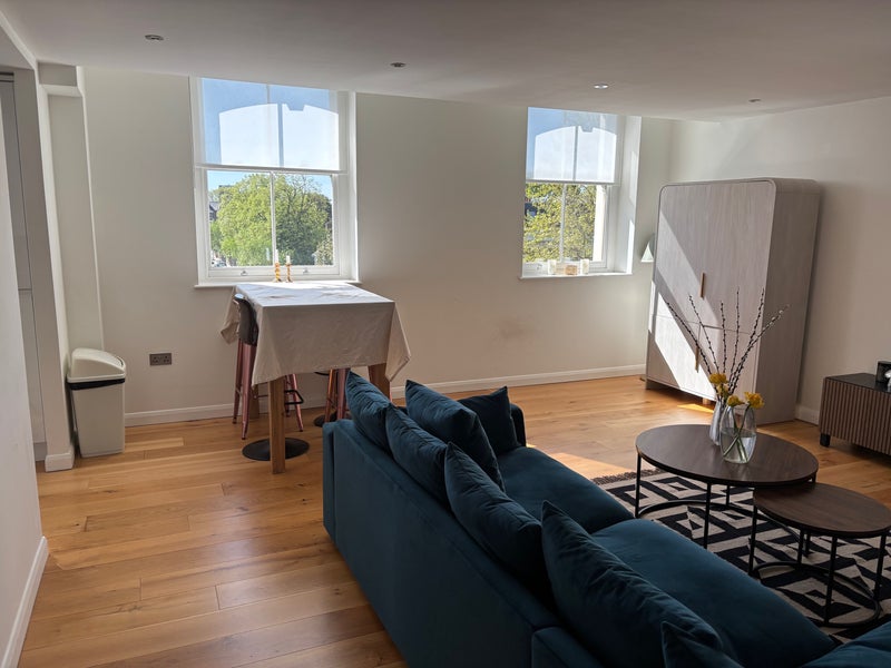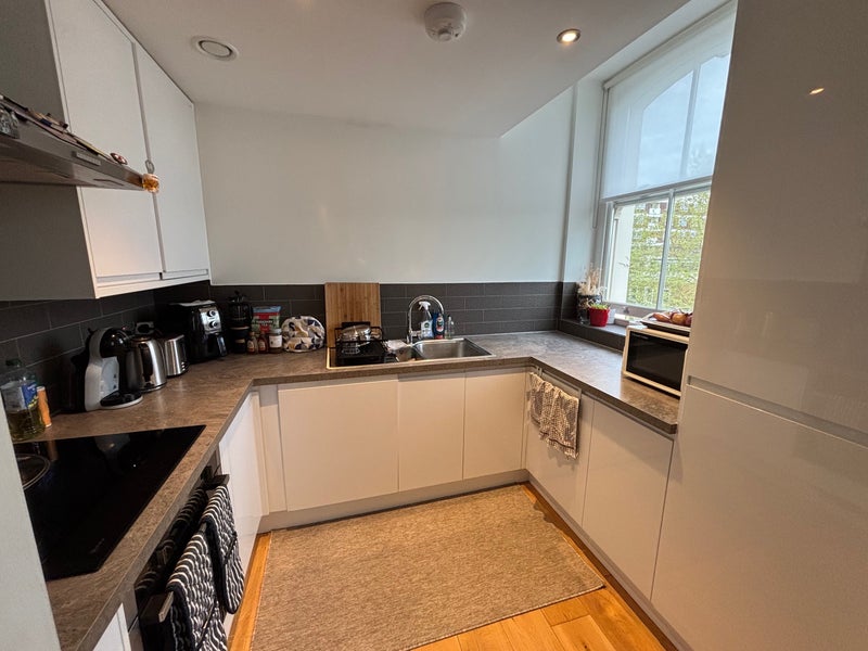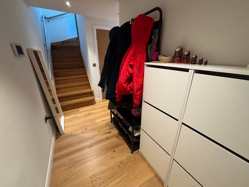 It’s a large, high-spec flat spread over two floors. The highlight is the rooftop balcony—it’s a sun trap in the summer and perfect for breakfast or evening drinks. We have a large living room and kitchen which has a dishwasher. The separate laundry room has a washer/dryer, there's also loads of storage in there which is really useful. The flat has high ceilings and feels really light and roomy. Off-street parking available.