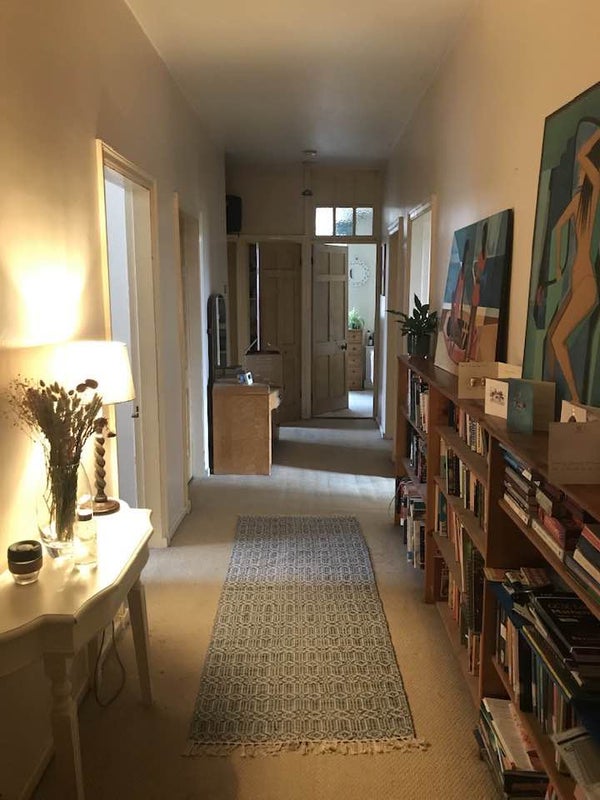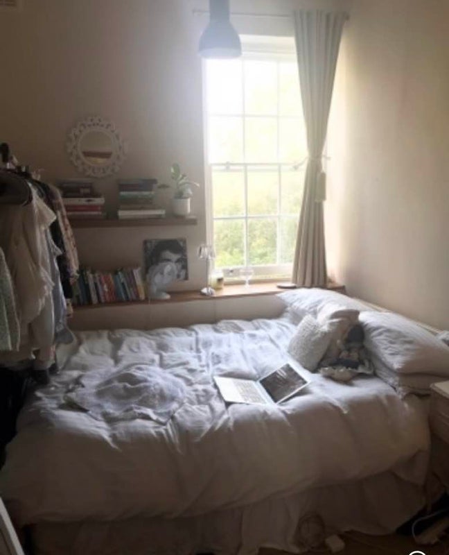 We have a big kitchen with all the amenities, - washing machine, tumble dryer and dishwasher, which also has a balcony with a little breakfast seating area. There is a large hallway and living room with table/chairs and a sofa area. There is a shared bathroom with a massive bath with feet and shower, and a separate toilet room. The room going is bright with a big window, double bed, chest of drawers, wardrobe, and storage cupboard, and it's a decent size room. The rom currently has a different layout to the photo but it's the same space. We also have use of a large communal garden. The flat is non smoking.
