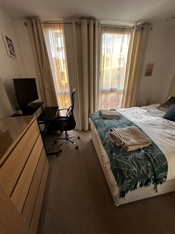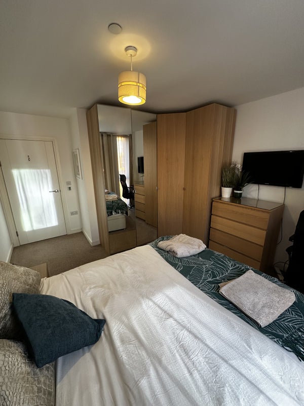 I am looking to welcome someone into my homely spare room. The available spare room comes fully furnished, with amples of storage space, including a large double wardrobe, chest of drawers, 2 bedside tables. Duvets/pillows can be made available if needed in addition to a TV that is already on the wall there.(note photos include a screen which will not be in the room once rented out)
