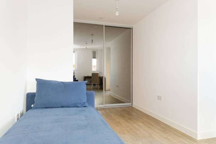 Hi, I am renting a room with its on bathroom in a 3 bedroom flat. The flat is located in a development called Enderby Wharf, which is located 10 minutes walk from Maze Hill station and 15 minutes walk to North Greenwich or 3 minutes bus (188, 422).