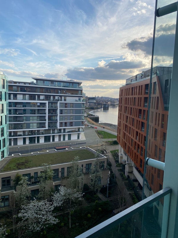 The flat has a balcony with stunning views of the Thames and Greenwich Town Centre and it’s just a minute from a peaceful riverside spot.