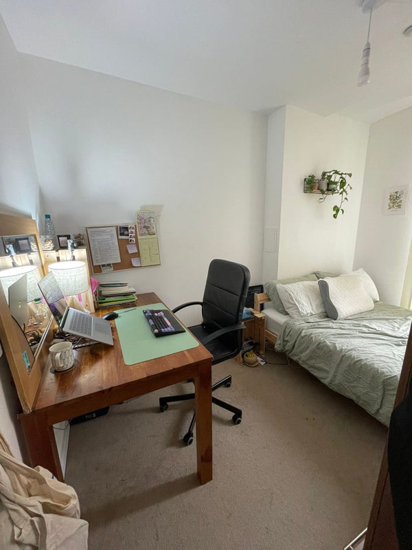 The available room shares a bathroom with Amy and comes with a comfy sofa bed, desk, and small wardrobe — though you’re welcome to bring your own furniture.