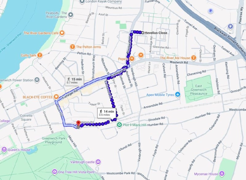 • Greenwich Station – approx. 20 minutes walk