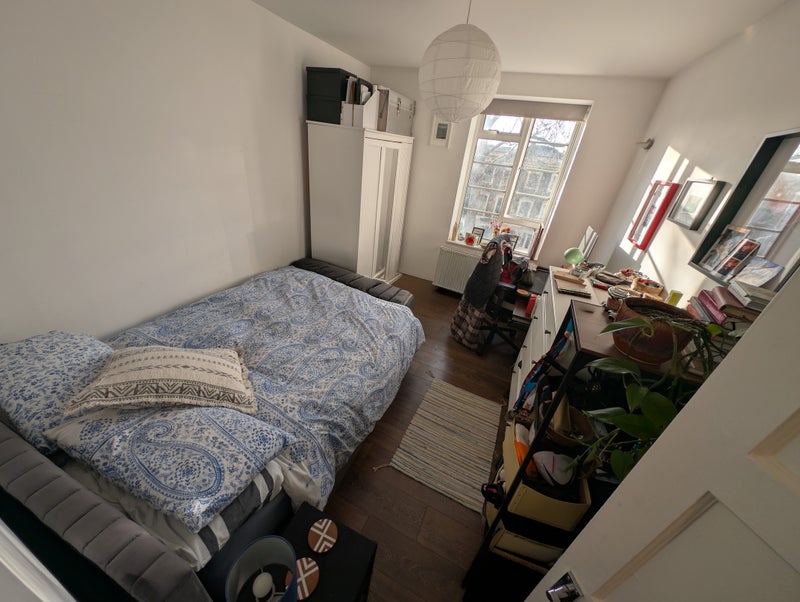 Bright sunny and quiet flat with three double Rooms. 2 large 1 small. All have double beds. And space for a desk wardrobe chest of drawers etc