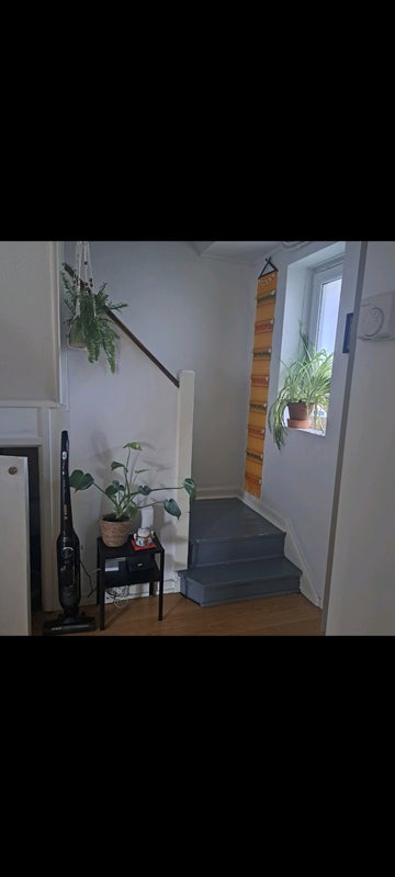 The flat is split over two floors: upstairs has three bedrooms and two bathrooms, while downstairs features a kitchen, a bright living room (when the sun’s out!), and a utility room that can be used for work, studying, hobbies, or drying clothes.