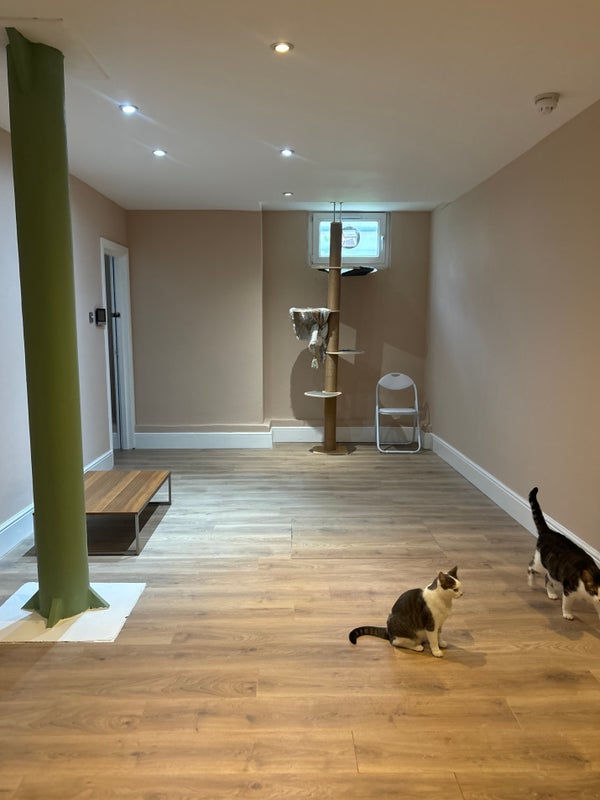 I have 2 very cute cats who have access to the outdoors - you must be able to live with cats (very low maintenance). They are tabby / tortoiseshell and don’t shed much fur. They’re very clean.