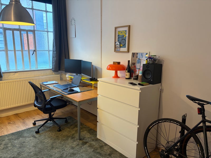 A spacious, light-filled room available for sublet in a warehouse conversion in Hackney from 16 December up to 18 January 2026 (dates flexible).