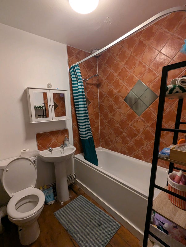 You'll be sharing the bathroom with only one person (Mitch), as the flat has two.