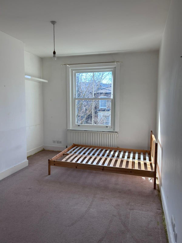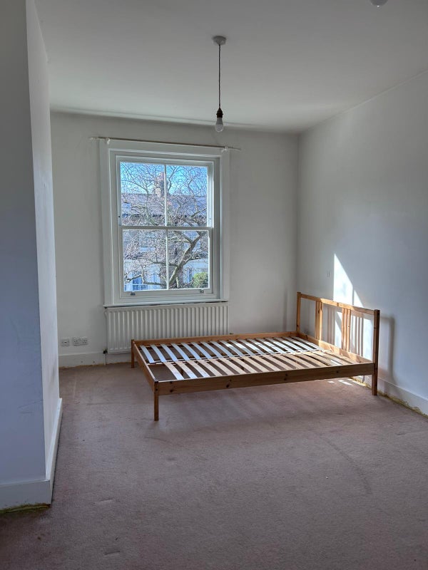 The room is unfurnished, so you can make it your own. There is plenty of space for a double bed, a wardrobe, a desk and extra storage (the bed frame in the photos is just for reference, but you could keep it if you want)