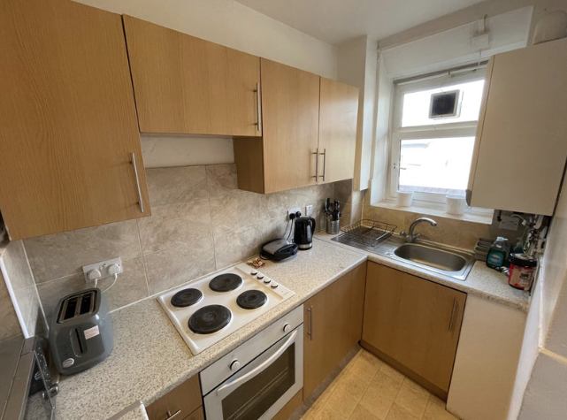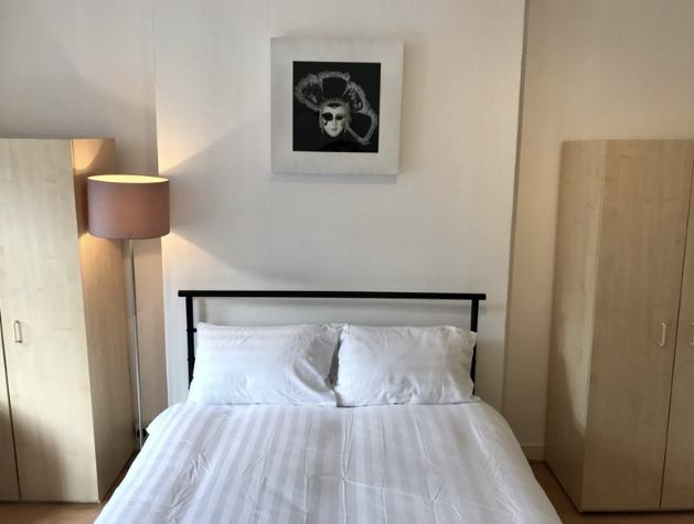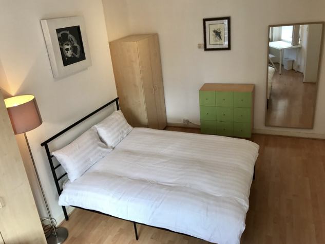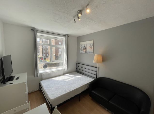 Fully furnished with double bed, wardrobe, chest of drawers, sofa, table & chairs, blackout curtains, and Smart TV 📺