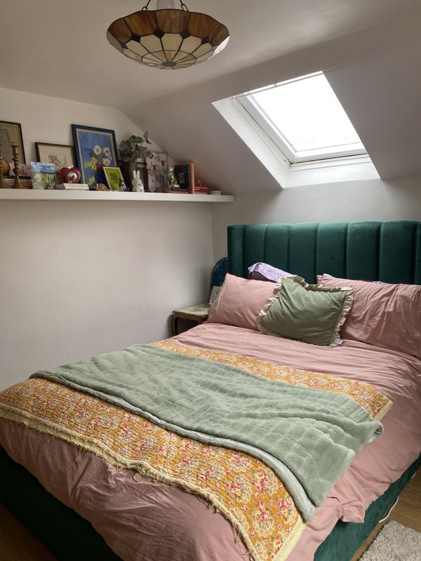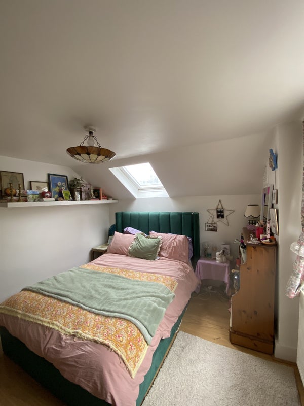 We’re looking for someone to take a really lovely, large top floor attic bedroom in a high-ceiling Hackney house. The room is on its own separate floor and comes with a private bathroom (bath with overhead shower), so it feels very self-contained and peaceful.