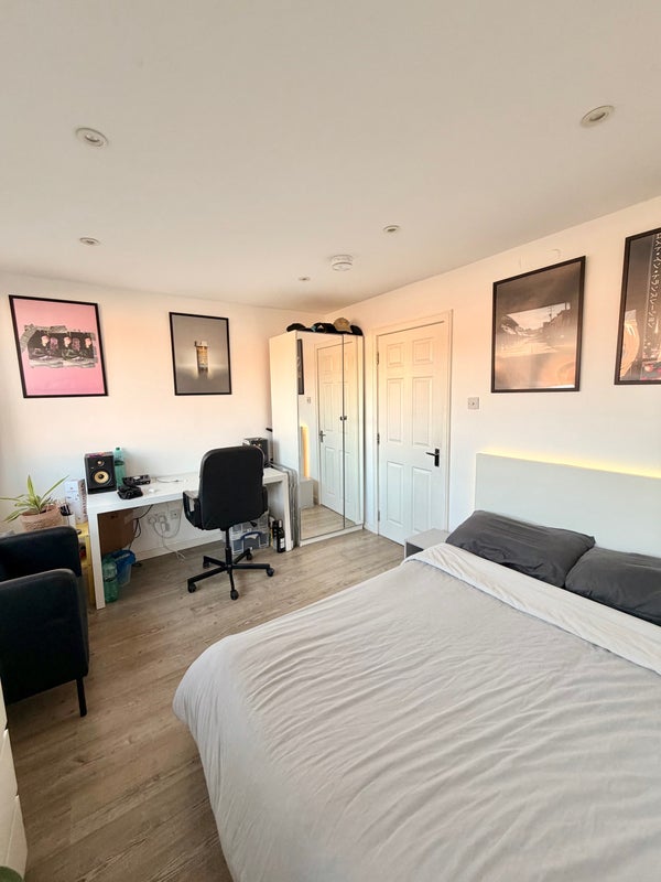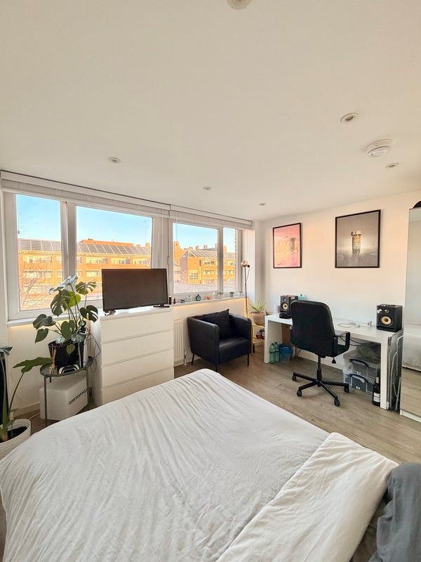 A large, sunny double room available in a renovated flat in Hackney Central, with open plan kitchen.
