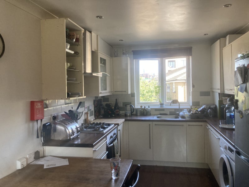 Sublet room available in a tidy 3 person flat in the heart of Hackney Wick. The room is available starting May 5th. Room has a bed, wardrobe, dresser and bike storage outside of the flat. You would be living with two wonderful young professionals. One woman (37) and one male (31). There is a communal living room, kitchen, and bathroom. The neighbourhood has a great energy with lots of shops and restaurants. Less than a 5 minute walk to Hackney Wick overground station. Also a very quick walk to Victoria park!