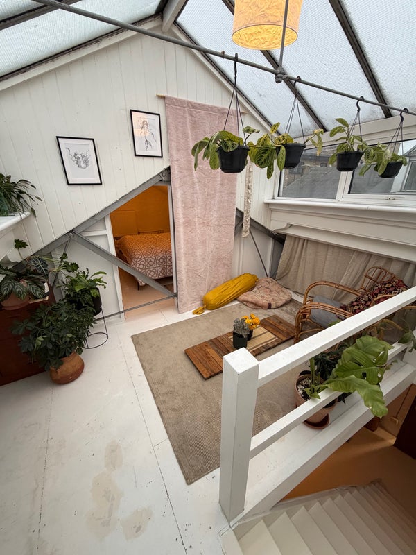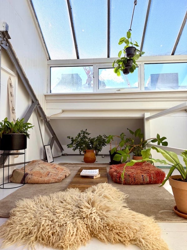 Upstairs, you’ll find a cool chill-out area with a greenhouse-inspired, bohemian vibe, an inviting space to relax, read, or work in peace.