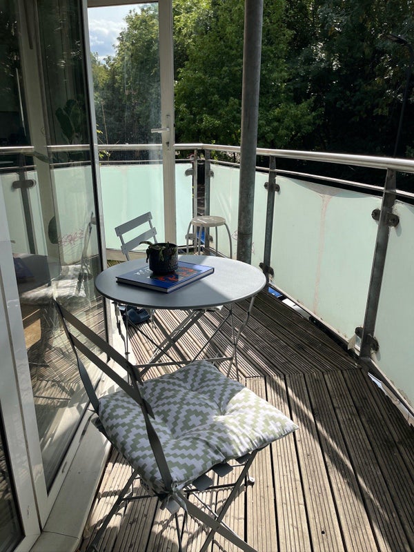 The space itself is super bright and airy, with huge windows, loads of plants, and open-plan living. It gets sunlight most of the day and feels really peaceful, great for working or just slowing down. There’s a proper desk setup, fast Wi-Fi, a full kitchen, washing machine, and a balcony with a table that catches the afternoon sun.