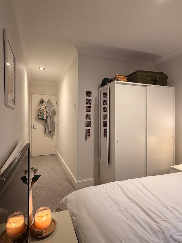 Room offered either unfurnished or furnished with ottoman storage bed frame and sliding wardrobe (£300 for both)