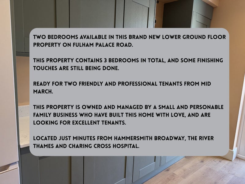Two Spacious Rooms Available in Stunning Newly Refurbished 3-Bedroom HMO in Hammersmith, West London