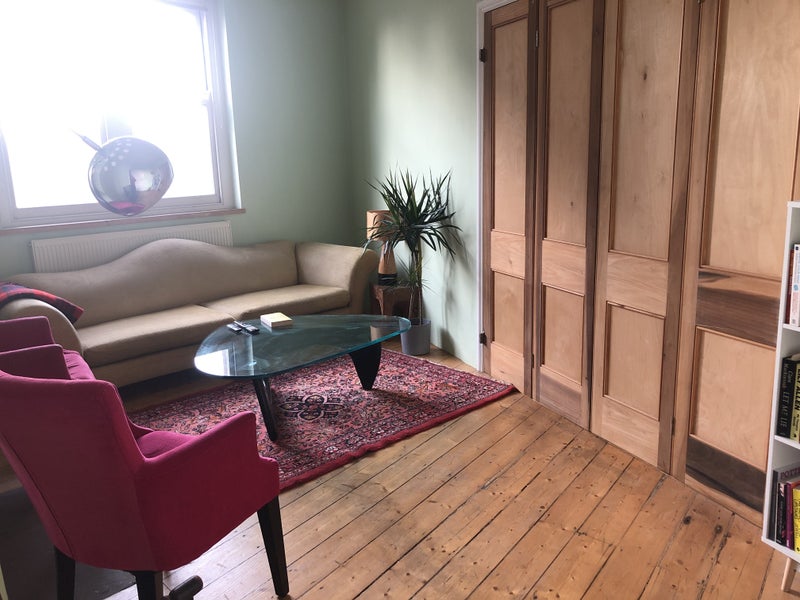There is a large communal kitchen and large living room. The kitchen has a washer/dryer and a dishwasher. The flat is a vintage style, quirky place with beautiful wooden floors.