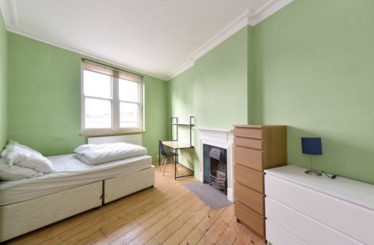 The room is the largest in the flat and has a free standing bath and sink (so partly en-suite) It comes furnished with a bed, 2 chest of drawers, desk and chair.