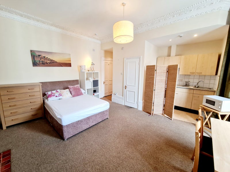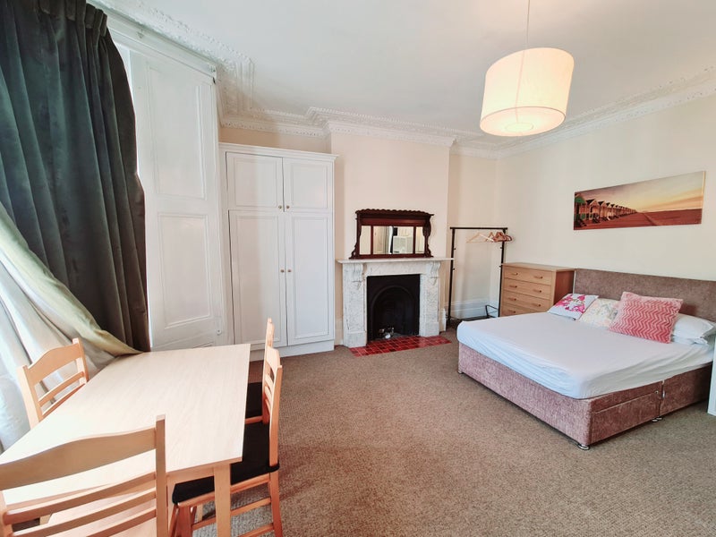 Studio comes with a Nice Bed, Wardrobe, and a dining table, Fridge Freezer & Washing Machine.