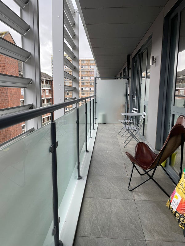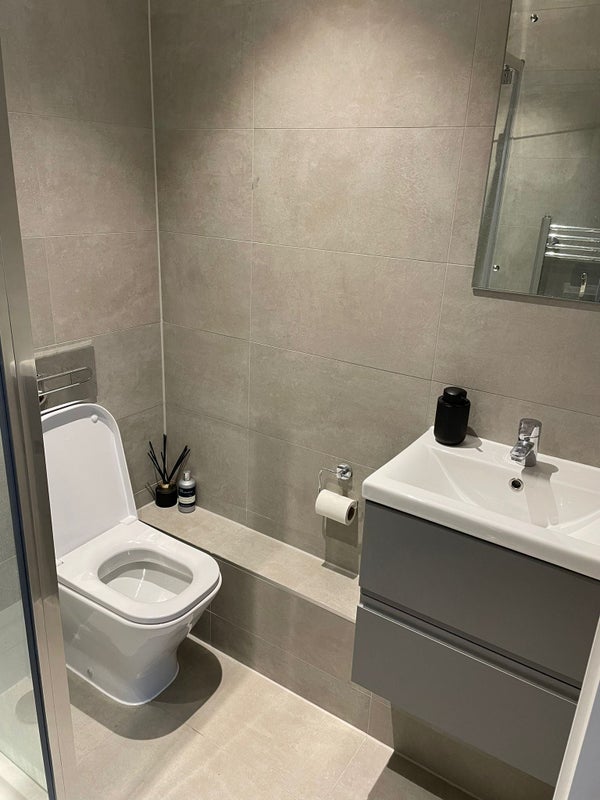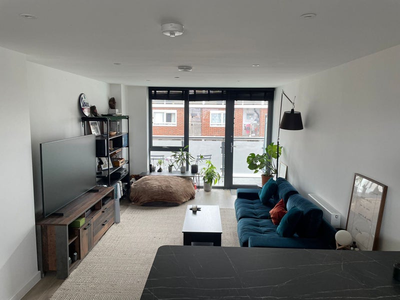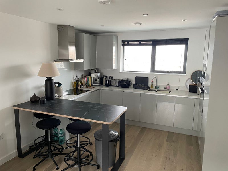 Ensuite room with a king bed and wardrobe space available for rent from May 2026. This is to share a two bedroom two bathroom flat with an open plan kitchen and living room space. The apartment sits on the top floor of a recent new development and has lots of natural light with a south facing balcony. Closest stations are West Kensington, West Brompton, Fulham Broadway and Earl's Court, all within walking distance. Within 1 minute walk of the daily North End Road market.