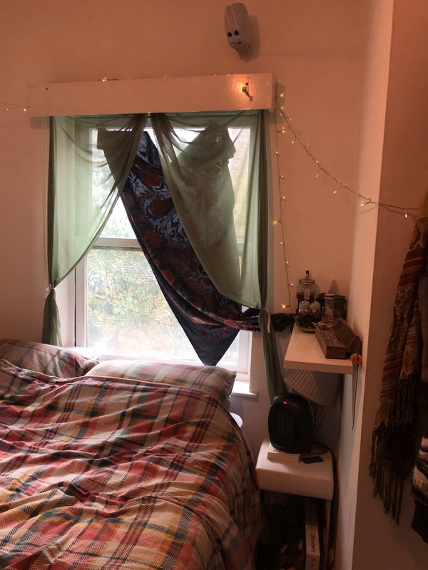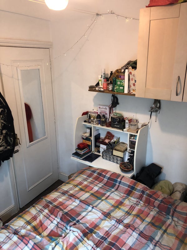 The room is currently a double, with two windows and great light, yet relative privacy. It's at the back of the property, so it's not too noisy. Please note - it is small, and while there are some shelves and a cupboard, it really only fits the double bed and not much else. I will have removed all my belongings so you can occupy fully. I have been considering downsizing to a single or a sofa-bed to make better use of the space. If you'd like to, you can do that.